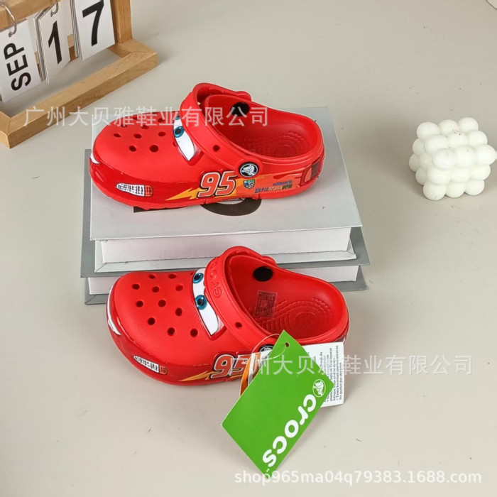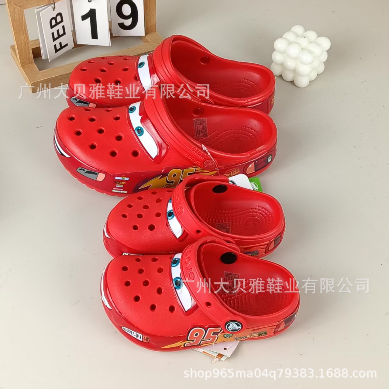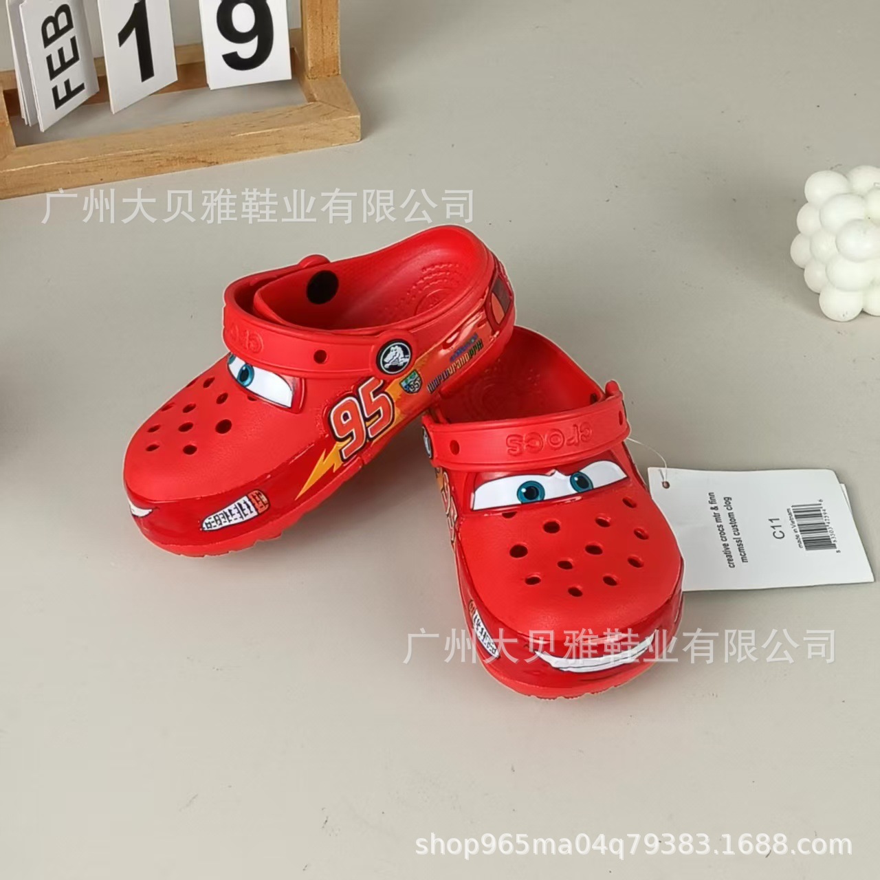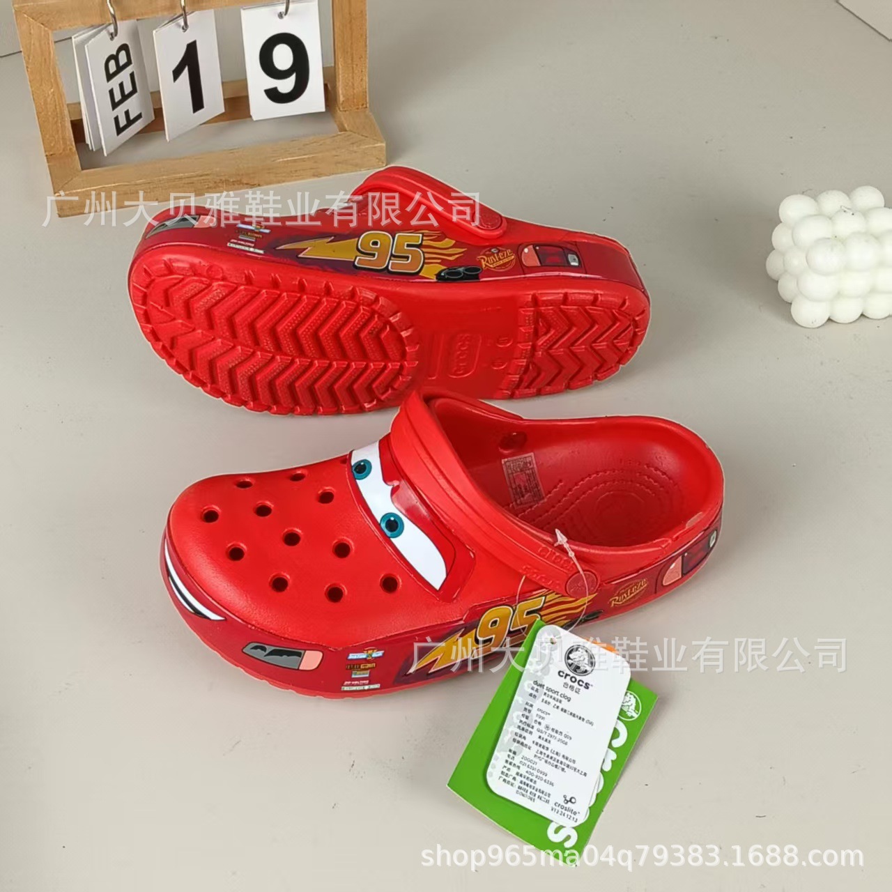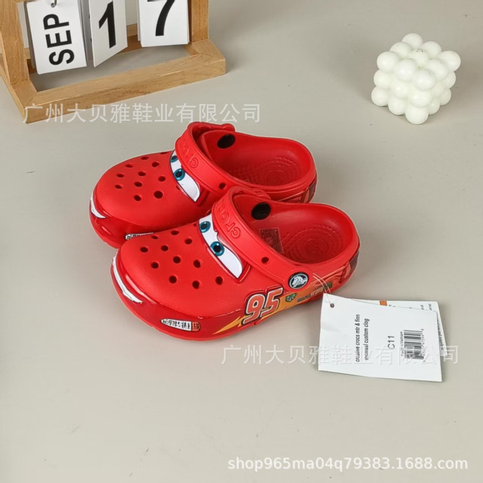 卡通炫酷亮燈男童麥崑95汽車洞洞鞋兒童個性防滑發光舒適速乾涼拖