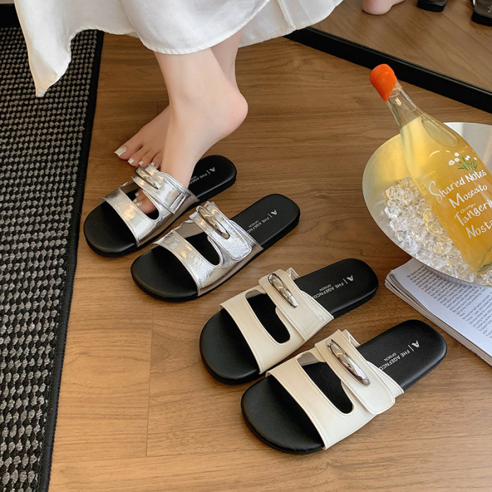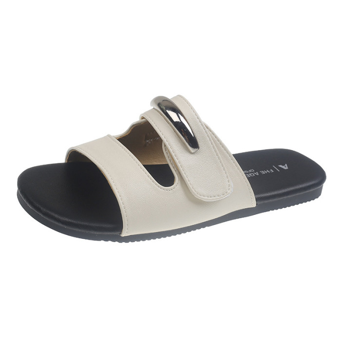 金屬搭釦一字拖鞋女2025夏季外穿時尚配裙子海邊法式魔術貼小涼拖