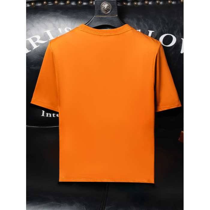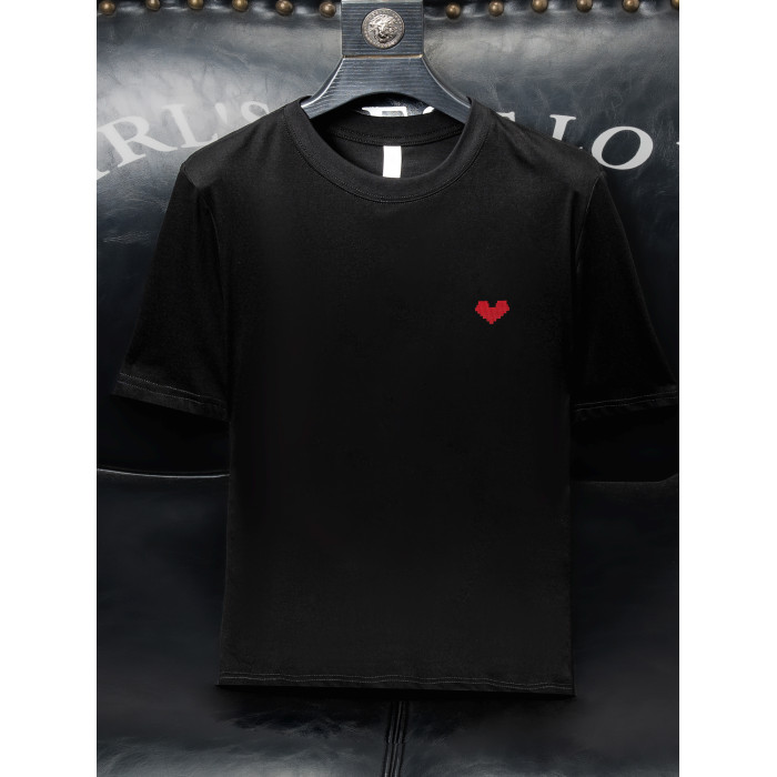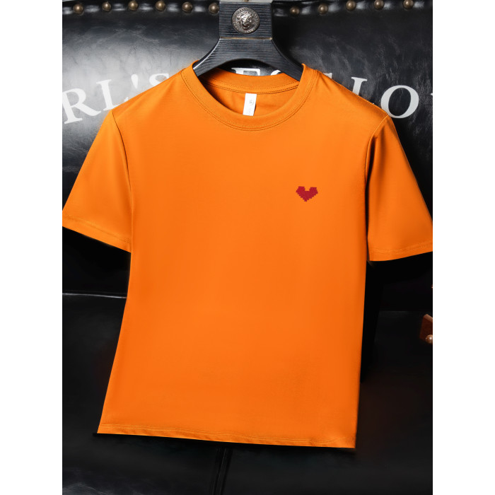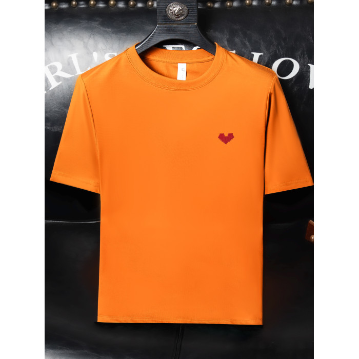 純色休閒2025夏季新品時尚簡約愛心刺綉短袖高品質流行舒適男T恤