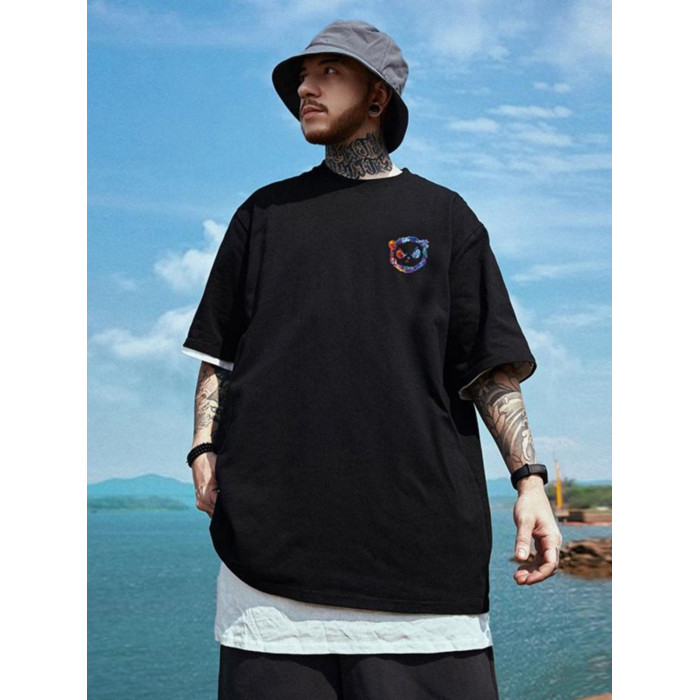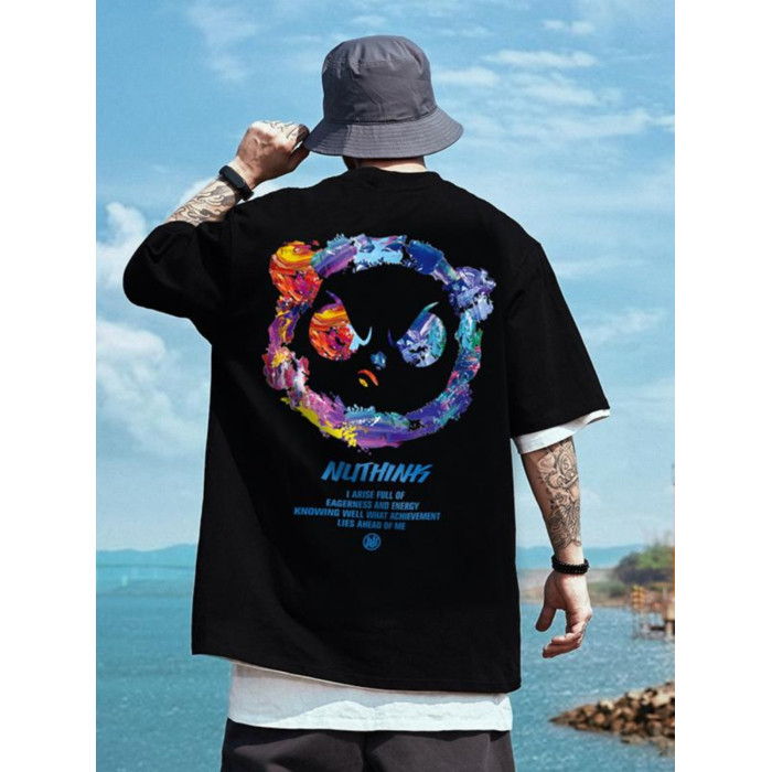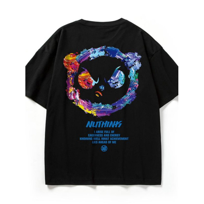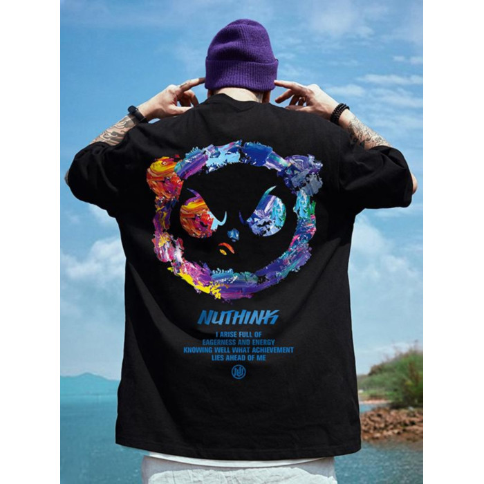 夏季新款國潮港風卡通大碼短袖男t恤潮ins潮牌潮流印花白色半袖