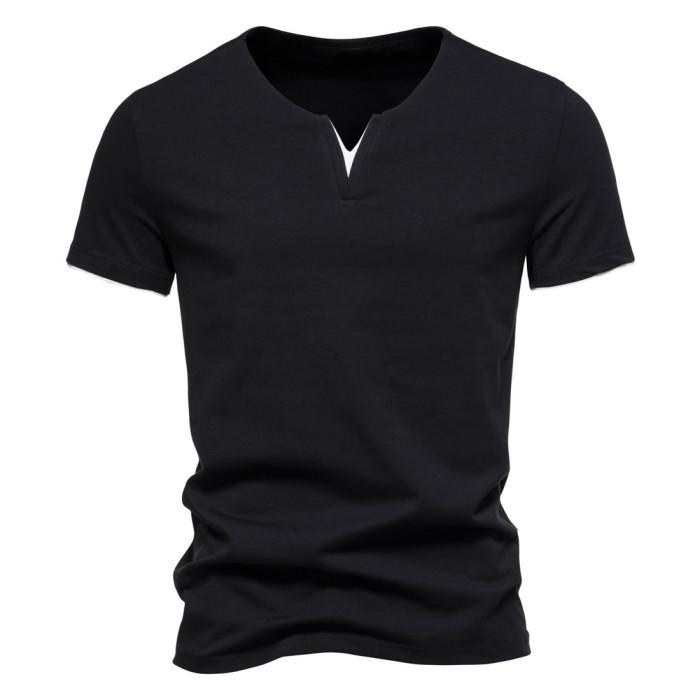 短袖男t恤2025新款純棉夏季彈力V領男士打底衫修身大碼時尚體恤潮