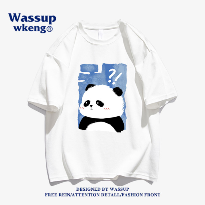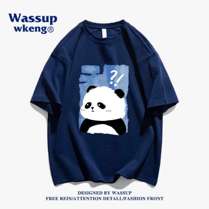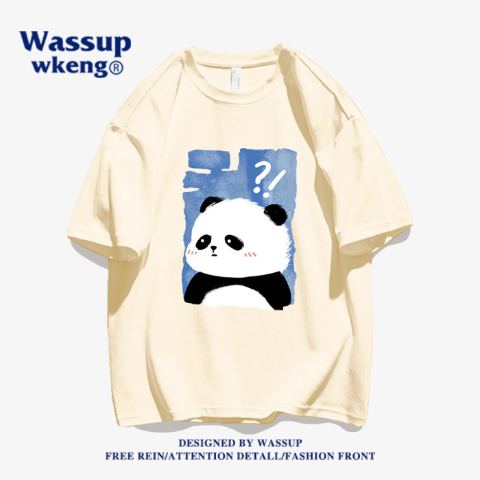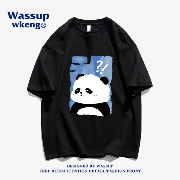 wassup聯名夏季卡通大熊貓短袖男t恤純棉2024新款國潮設計感半袖