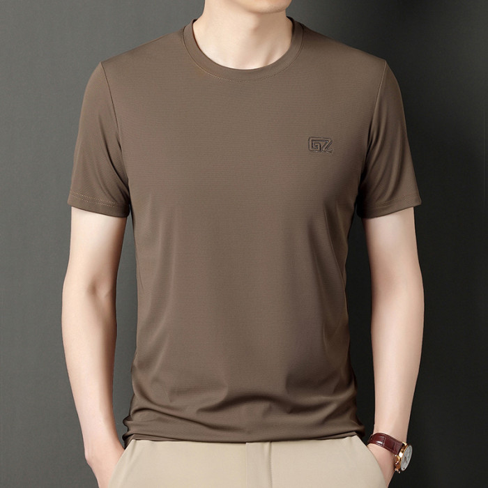 德國進口夏季男士時尚圓領短袖男t恤韓版休閒薄款冰絲速乾體恤男
