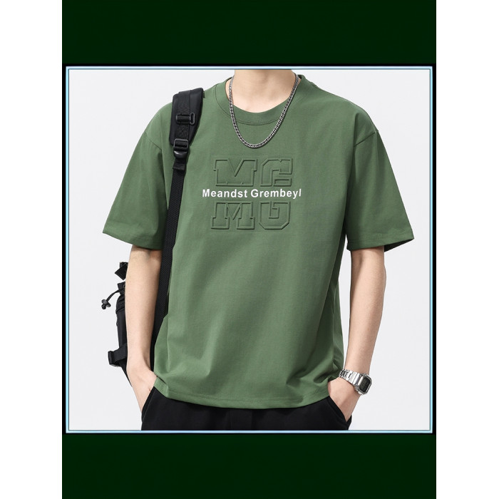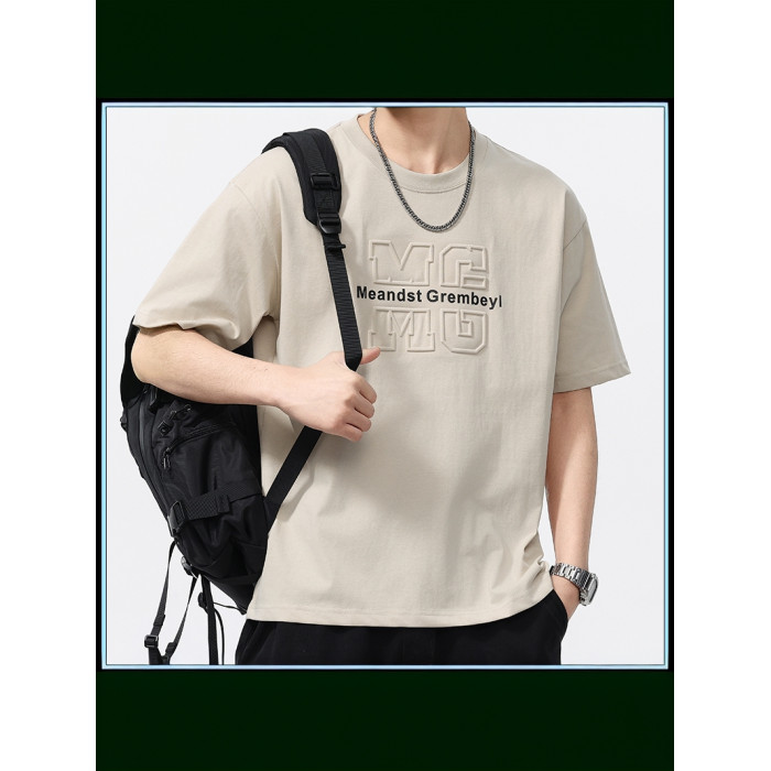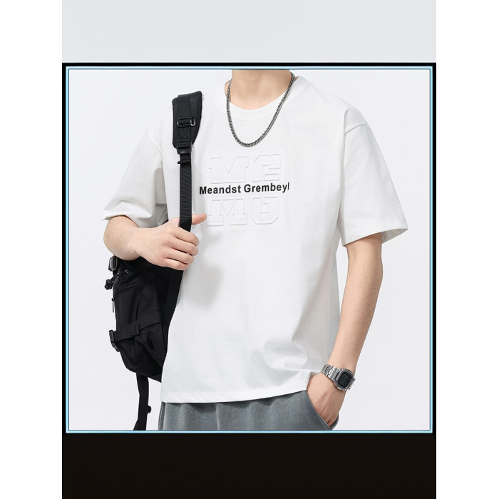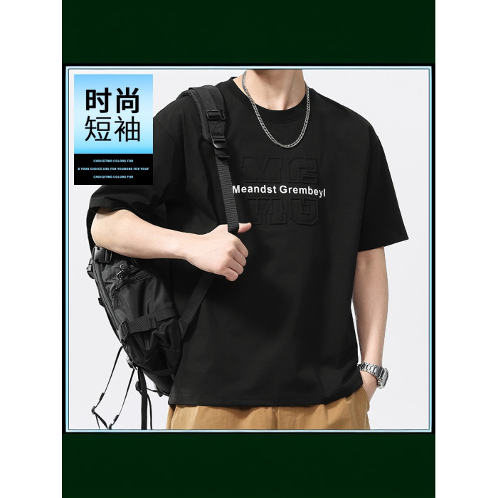 2025夏季新款圓領短袖男T恤潮流寬松透氣時尚休閒百搭上衣半袖