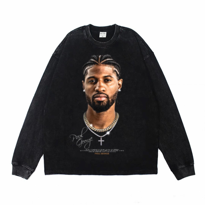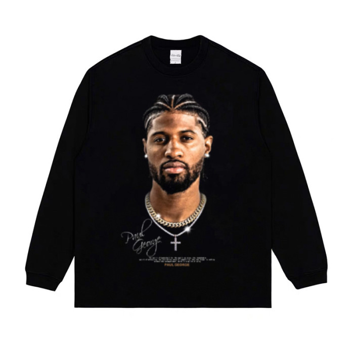 Paul George 喬治大頭版-美式籃球純棉夏季短袖上衣秋冬長袖男t恤