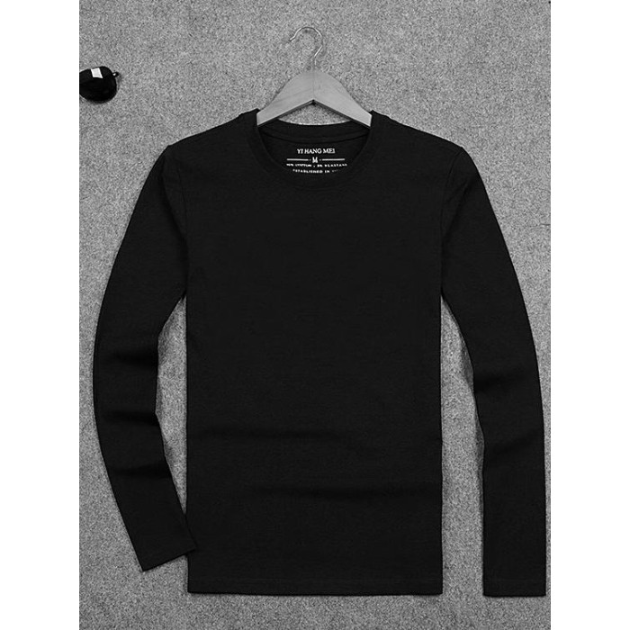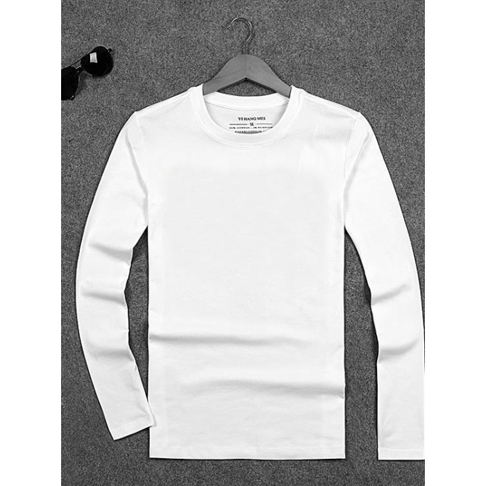 男裝圓領純色百搭青年長袖T恤 2024美式休閒春秋季男T恤流行衣服