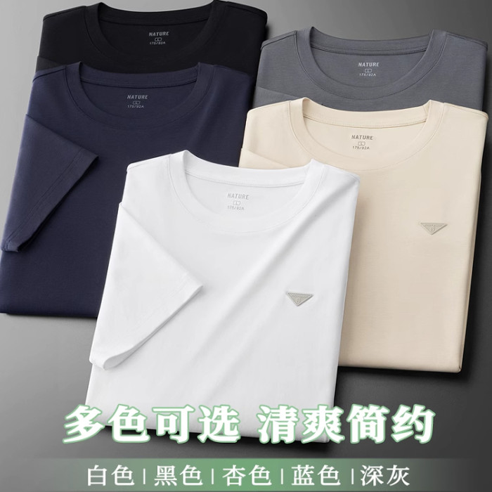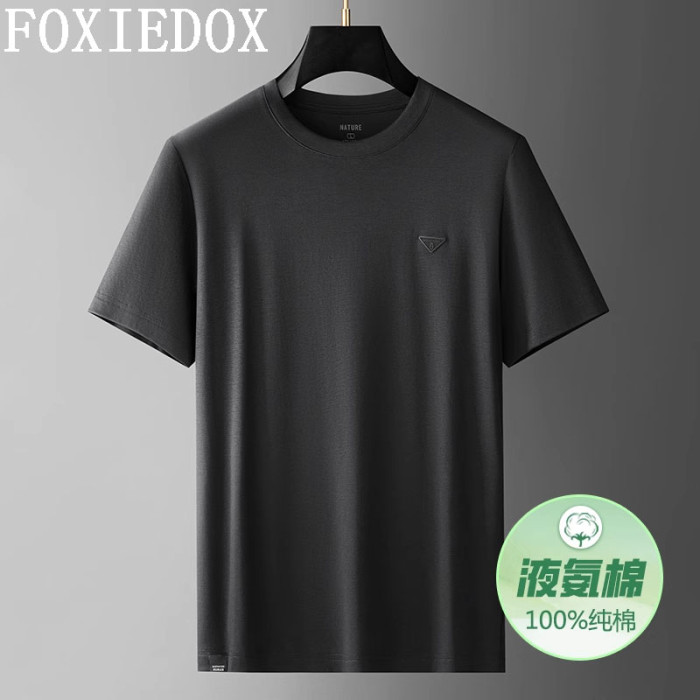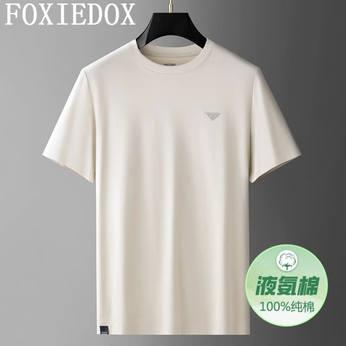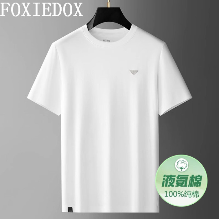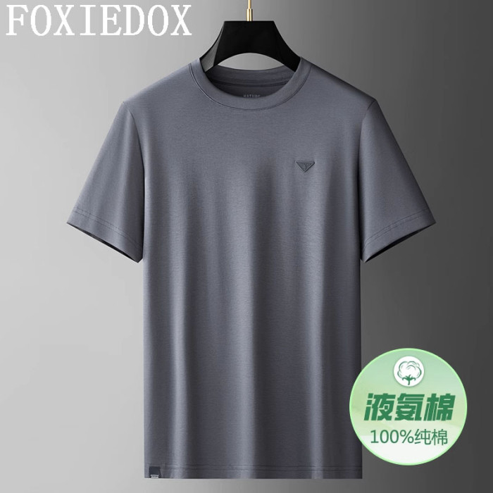 FOXIEDOX男裝夏季超新薄款純棉短袖t恤2025寬松中年爸爸圓領男T恤