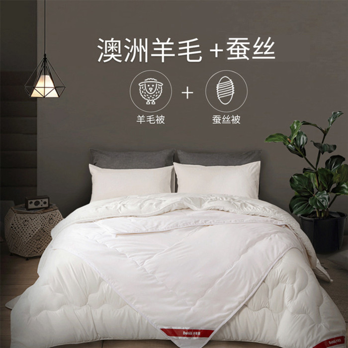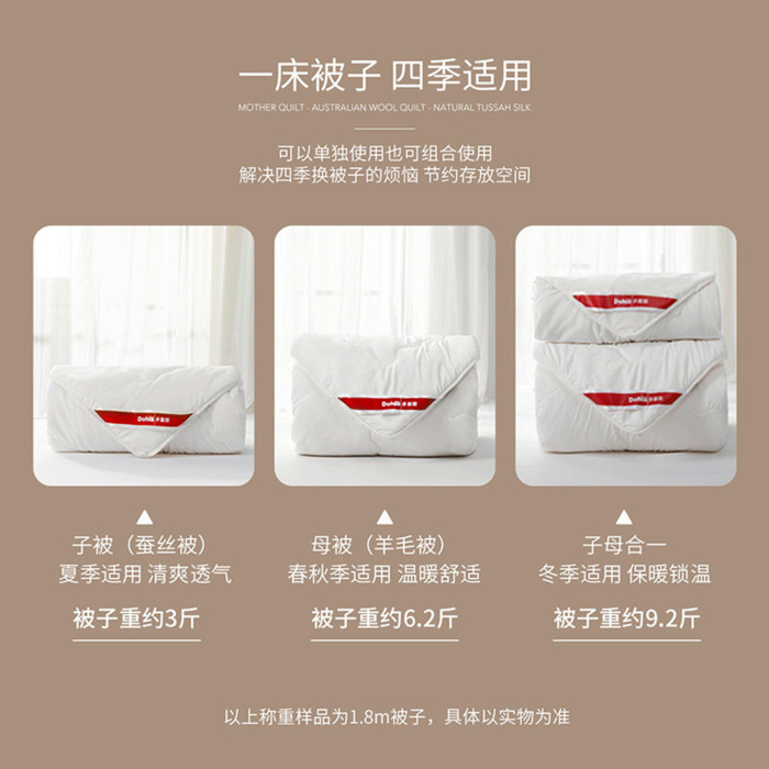 多喜愛100%蠶絲澳洲羊毛二合一子母被子冬被春秋四季被芯加厚保暖