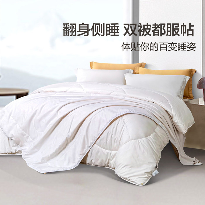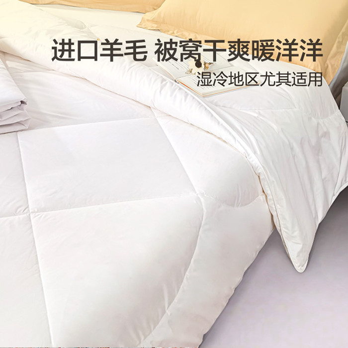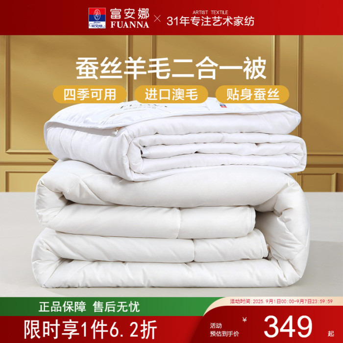 富安娜100%澳洲羊毛冬被蠶絲二合一保暖被子四季通用學生宿舍被芯