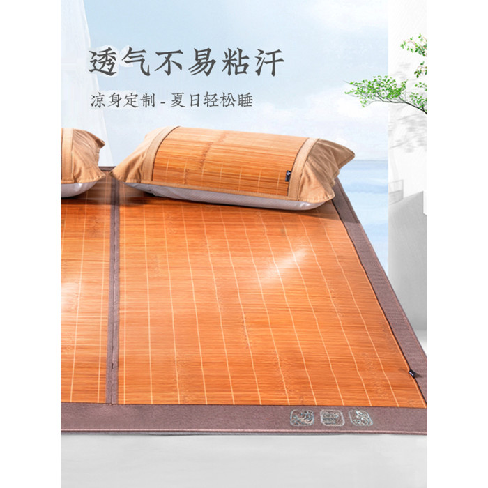遠夢竹音禦絲透氣蓆夏涼蓆子細竹蓆碳化雙面可折曡單人雙人1.51.8