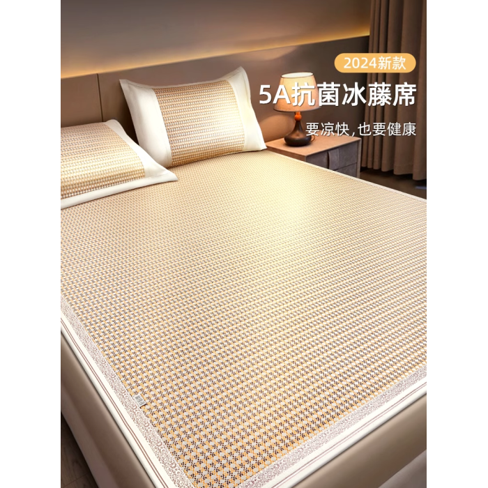 高級涼蓆夏季冰絲蓆2025新款天然藤蓆a類母嬰兒可用夏天蓆床笠款