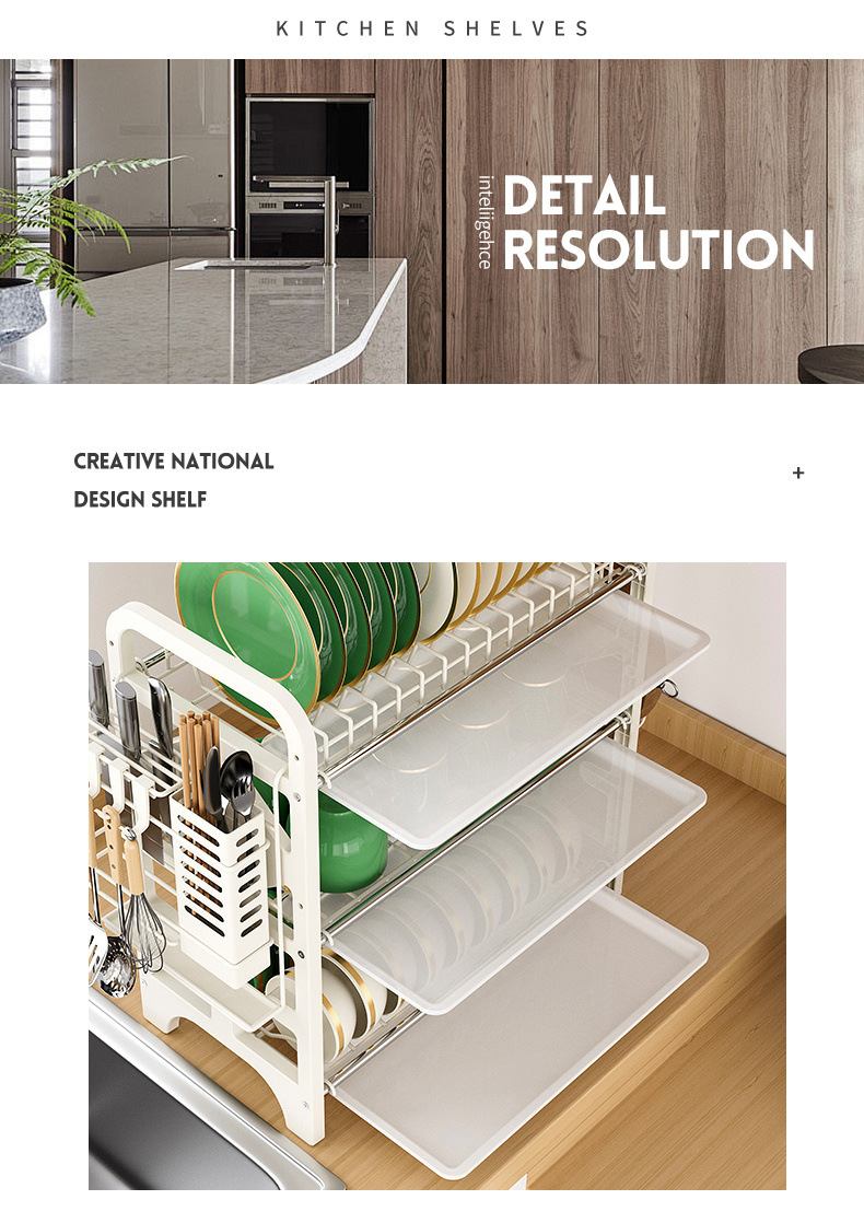 白色加厚升級款-3層主架+3磐+4掛鉤+刀架筷筒+砧板架
