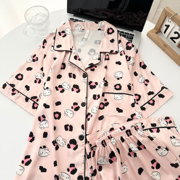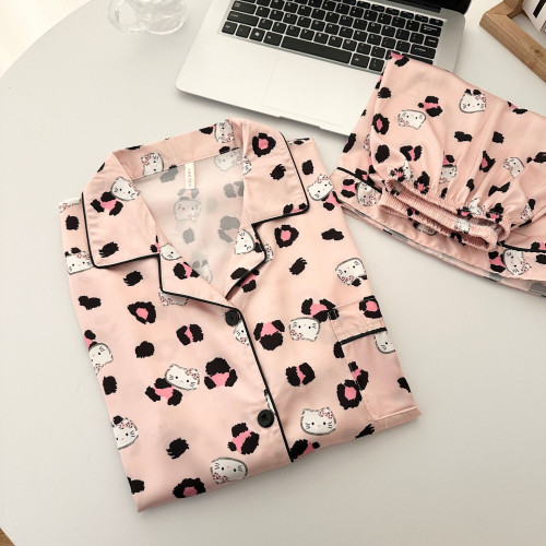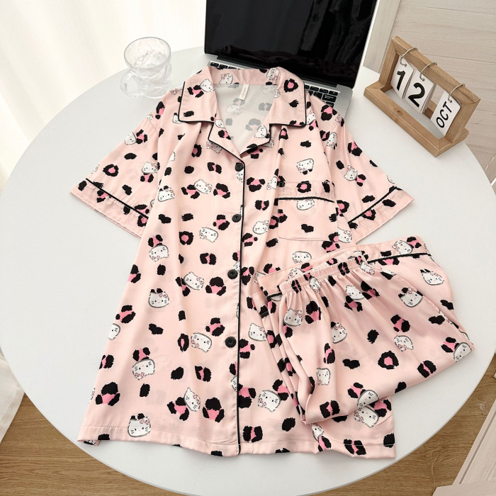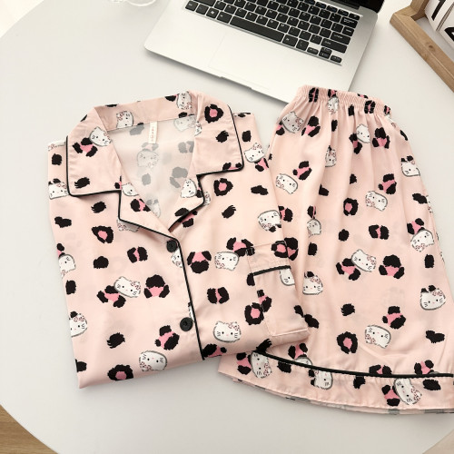 日系ins睡衣女夏季短袖短褲新款冰雪絲薄款家居服兩件套可外穿女