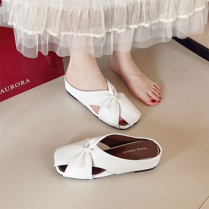 舒適圓頭坡跟涼拖鞋2025夏季外穿休閒穆勒拖鞋鏤空透氣包頭半拖鞋