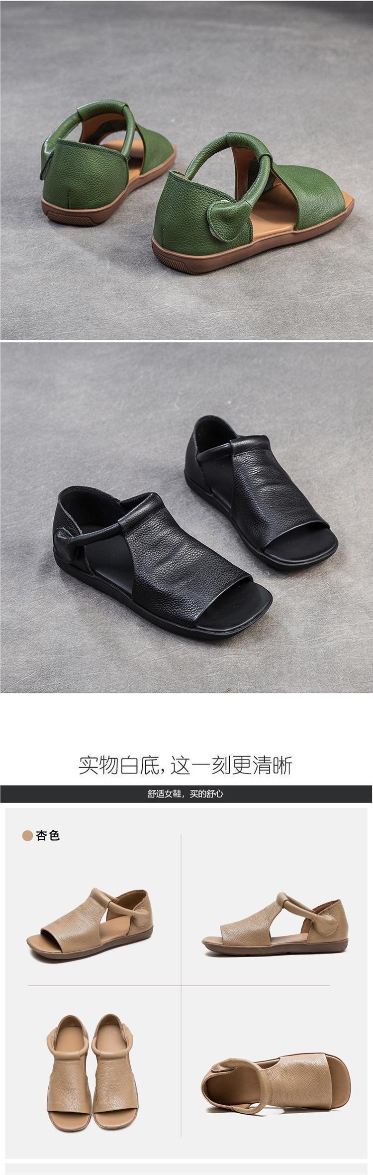 爆款2025夏季新款魚嘴平底復古涼鞋英倫手工魔術貼休閒羅馬女鞋