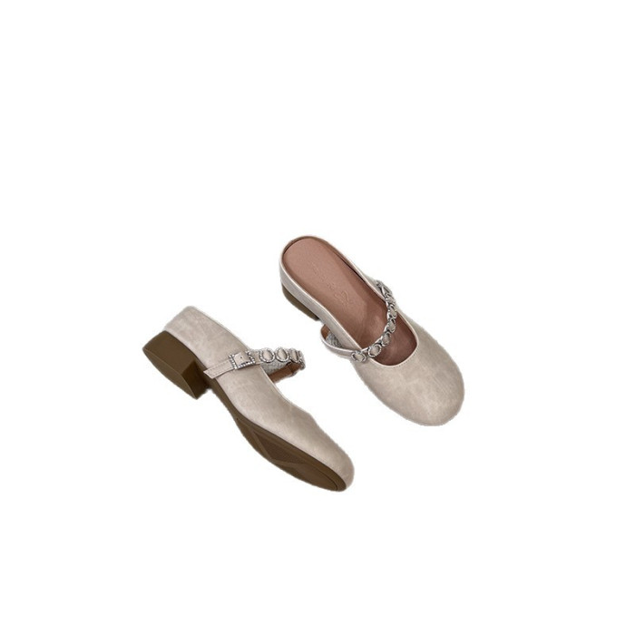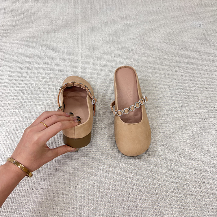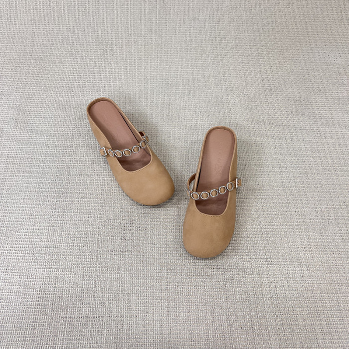 超軟小羊皮平底包頭涼拖鞋女小單鞋2025新款外穿瑪麗珍夏天半拖鞋