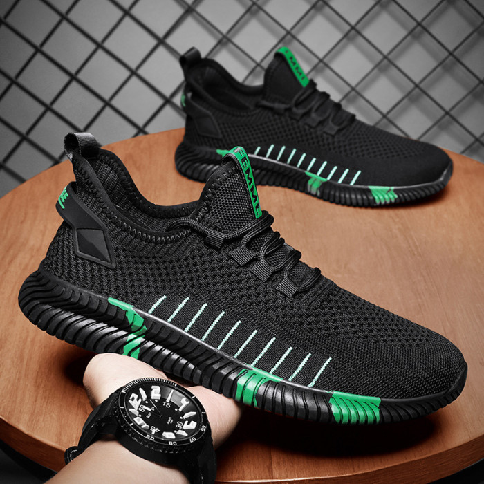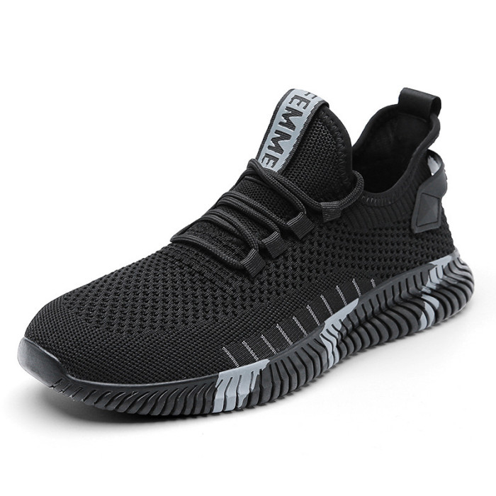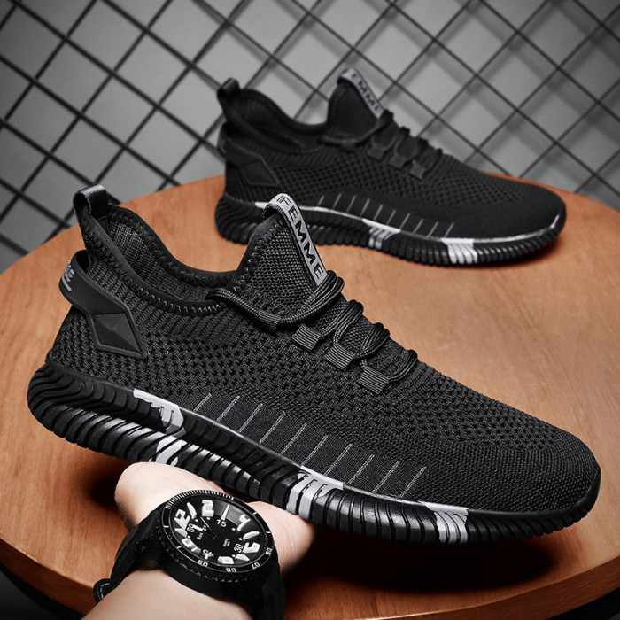 2025新款網面黑色夏季學生跑鞋男飛織網紅運動休閒潮流鞋跑鞋透氣