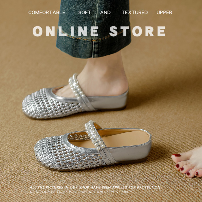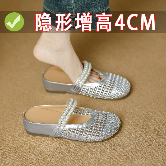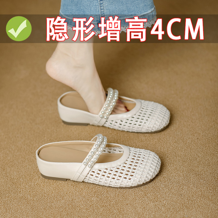 包頭半拖鞋女2025新款夏外穿勃肯洞洞鞋編織涼鞋一腳蹬懶人穆勒鞋