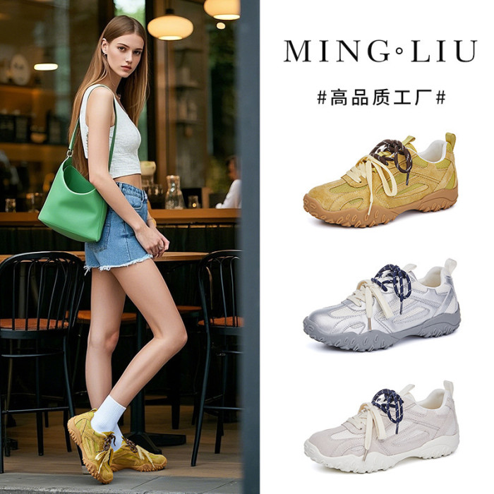 真皮阿甘鞋2025春夏新款鞋子女輕薄運動鞋網面透氣老爹鞋休閒女鞋
