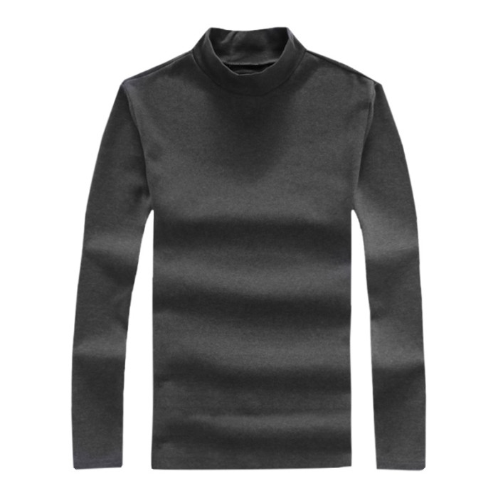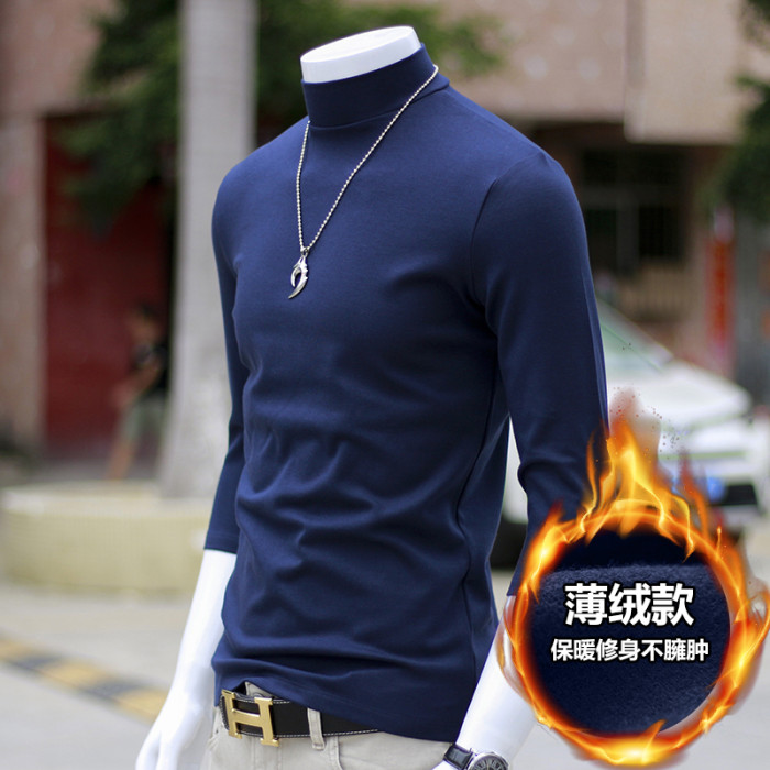 秋冬男士莫代爾半高領加絨長袖打底衫修身中高領絲光棉男t恤衫潮