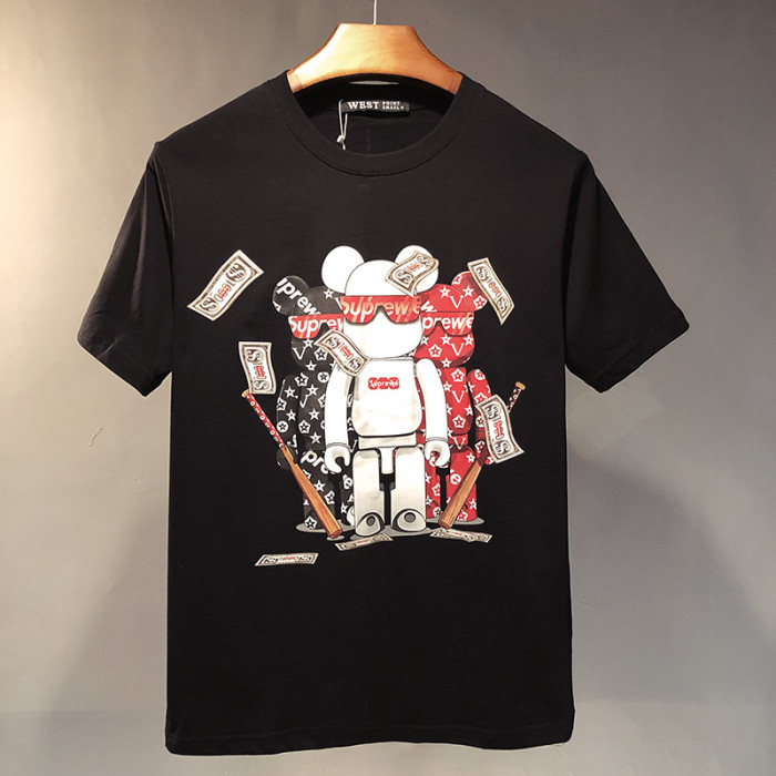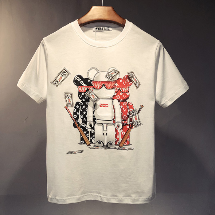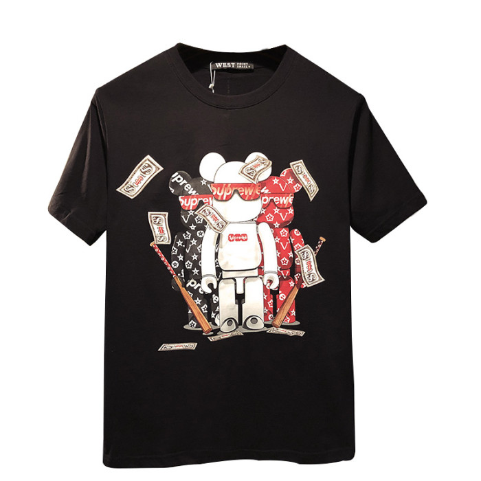 潮牌棒球小熊短袖男t恤韓版情侶裝男女同款青少年夏季純棉寬松T恤