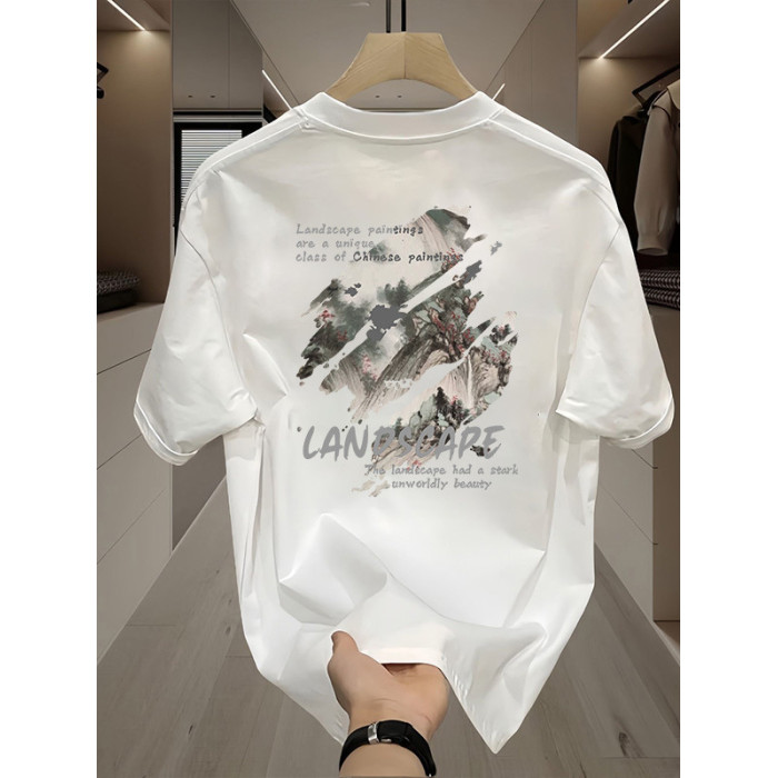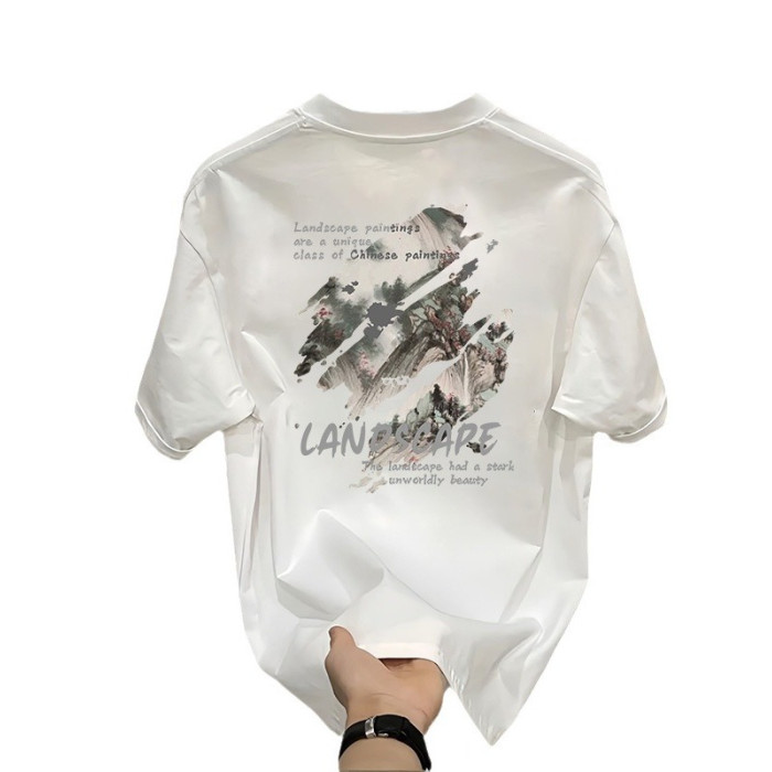 夏季新款短袖男t恤休閒百搭情侶短袖潮流印花寬松大碼圓領體恤衫