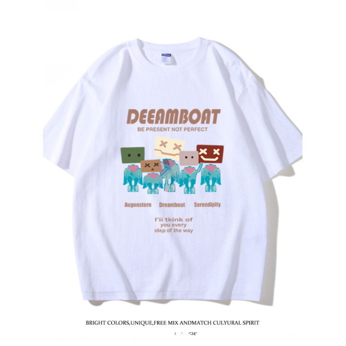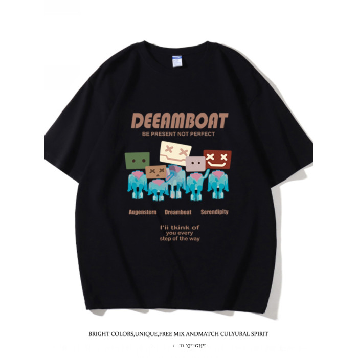 王一博同款紙箱人初高中生短袖夏季新款男t恤純棉寬松潮流INS上衣