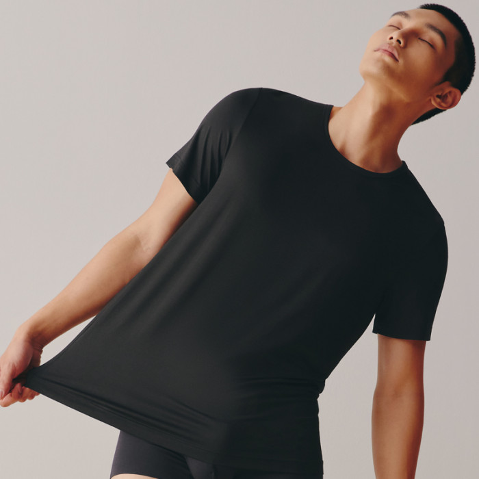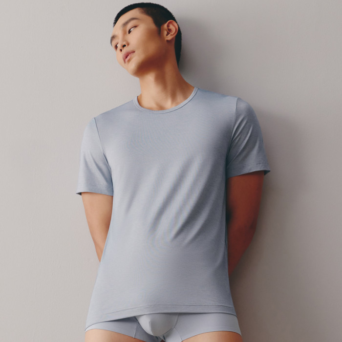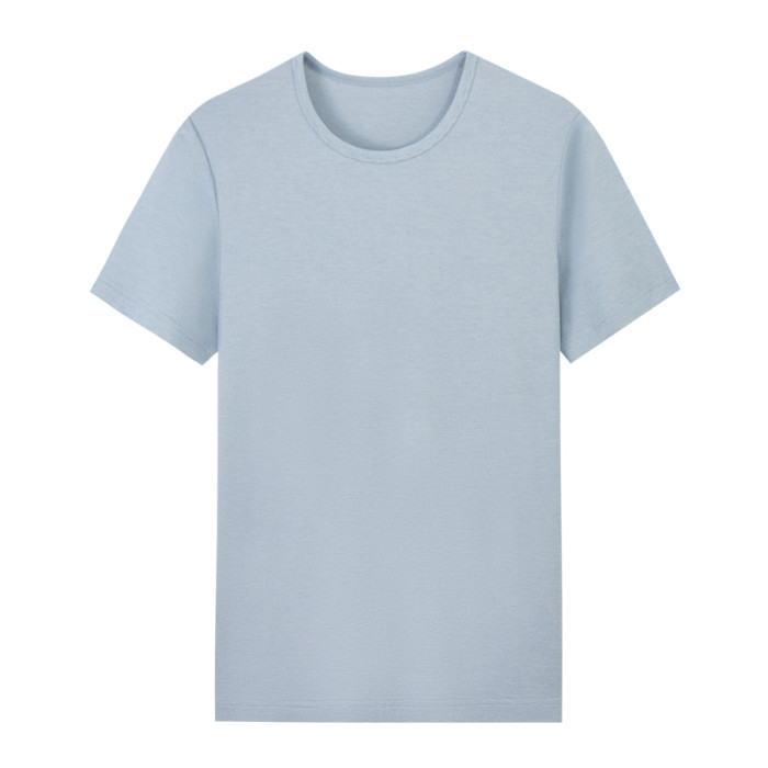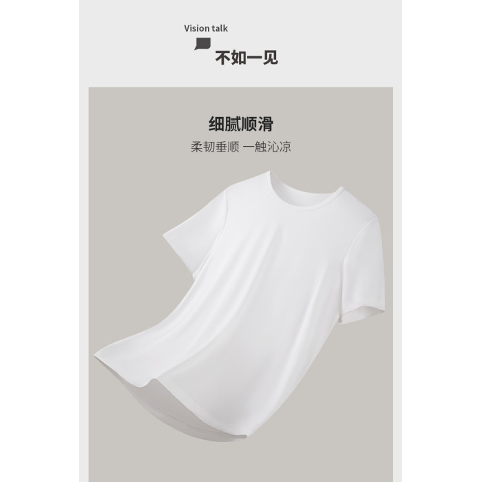 短袖男T恤夏爽滑舒適涼感木代爾隱條圓領男衫莫代爾純色速乾