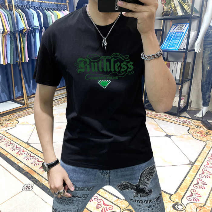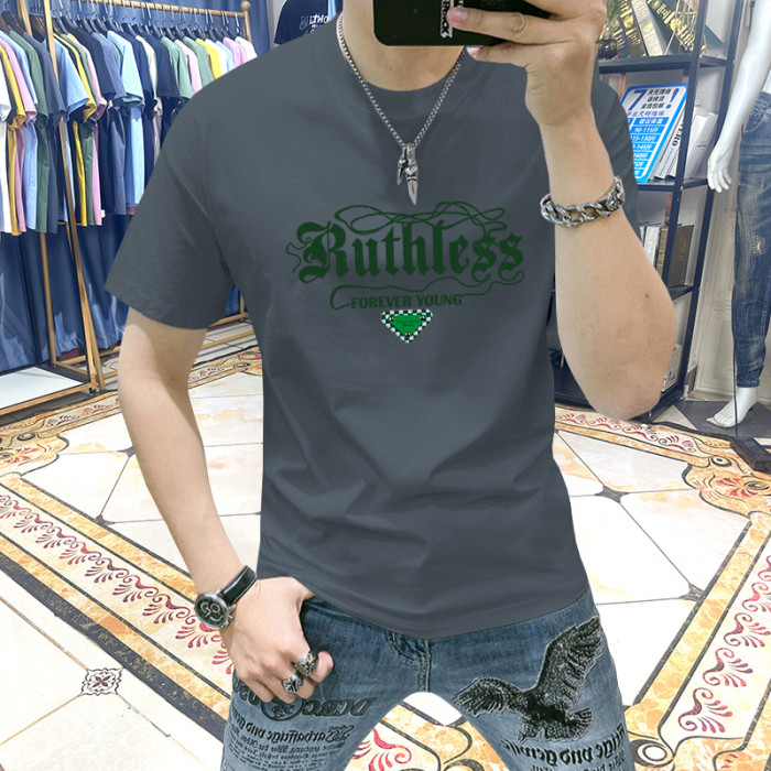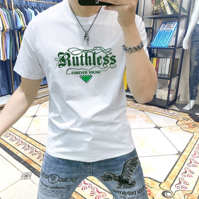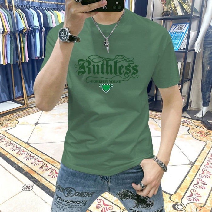 藍晟依短袖男t恤2025新款夏季潮流修身百搭印花半袖衣服品質男裝T