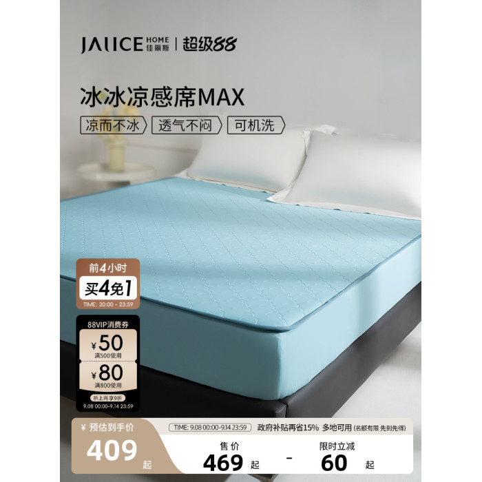 佳麗斯夏涼墊床笠罩a類涼蓆夏天2025新款軟蓆可水洗涼感冰絲涼蓆