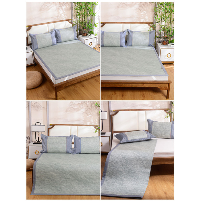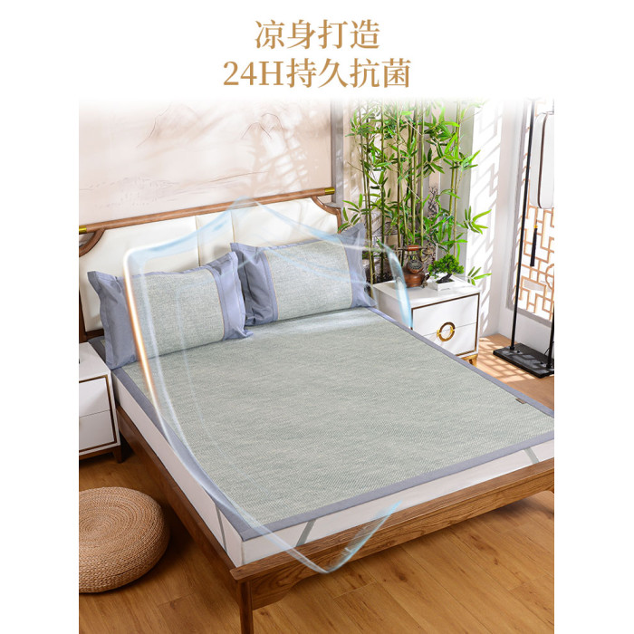 霧藍灰-抗菌防蟎藤蓆(配枕套)