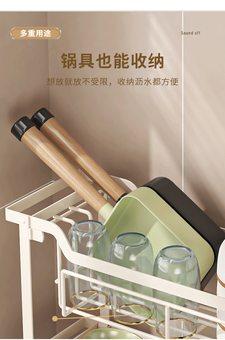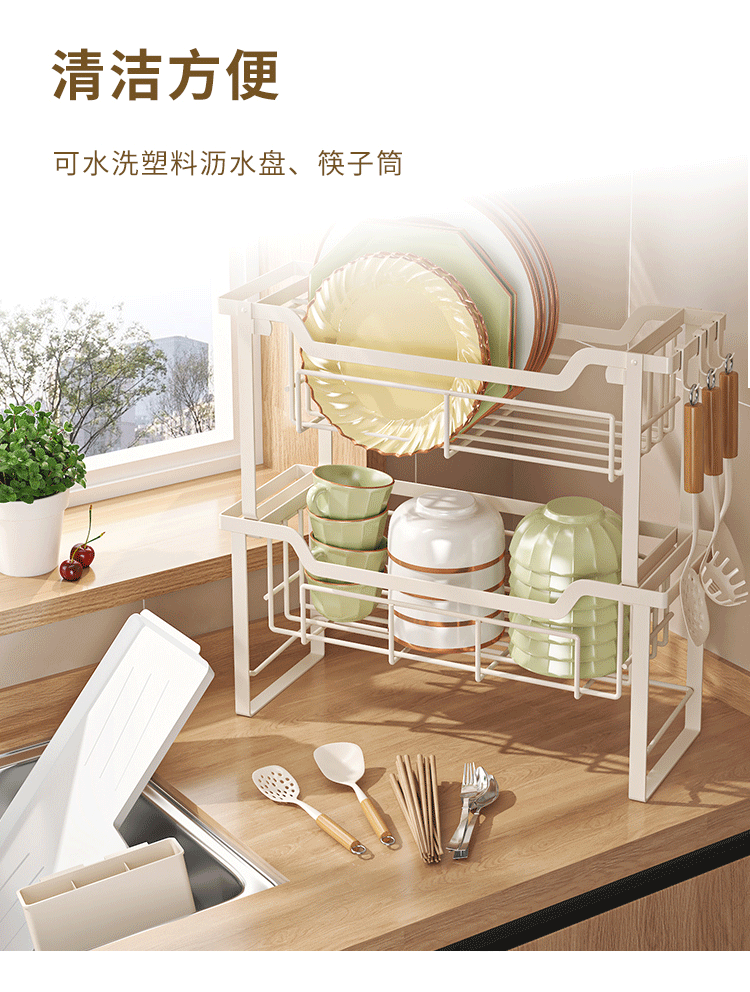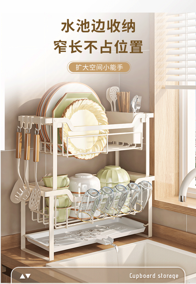 【白色】雙層43CM碗碟架+筷子筒+盃架