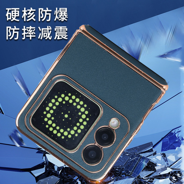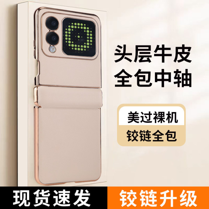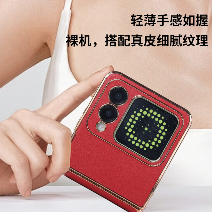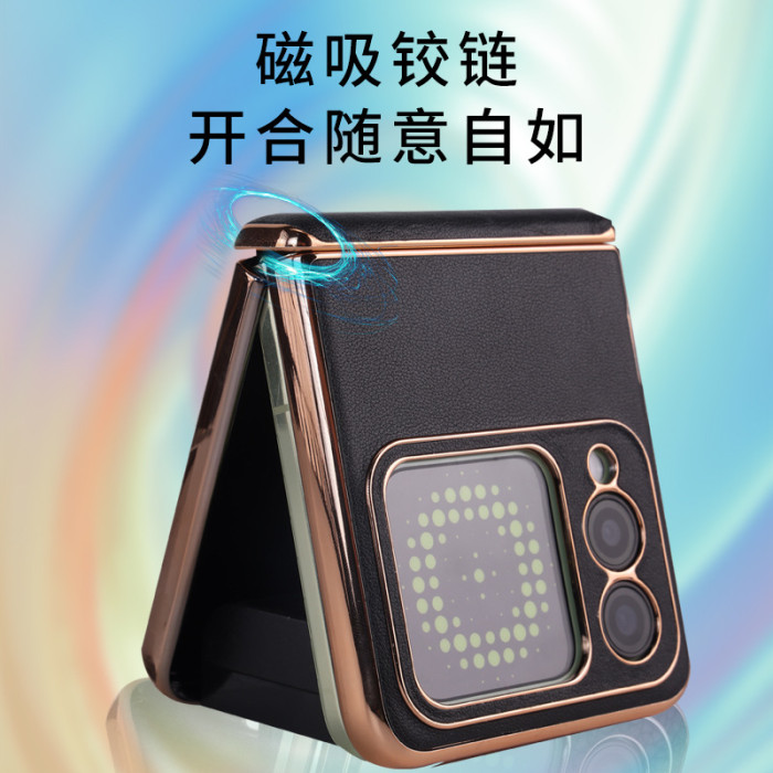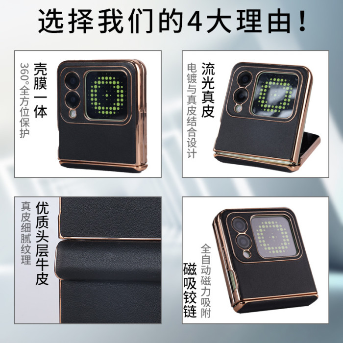真皮適用華爲 nova Flip手機殼保護電鍍金邊【中軸款】【納帕紋】
