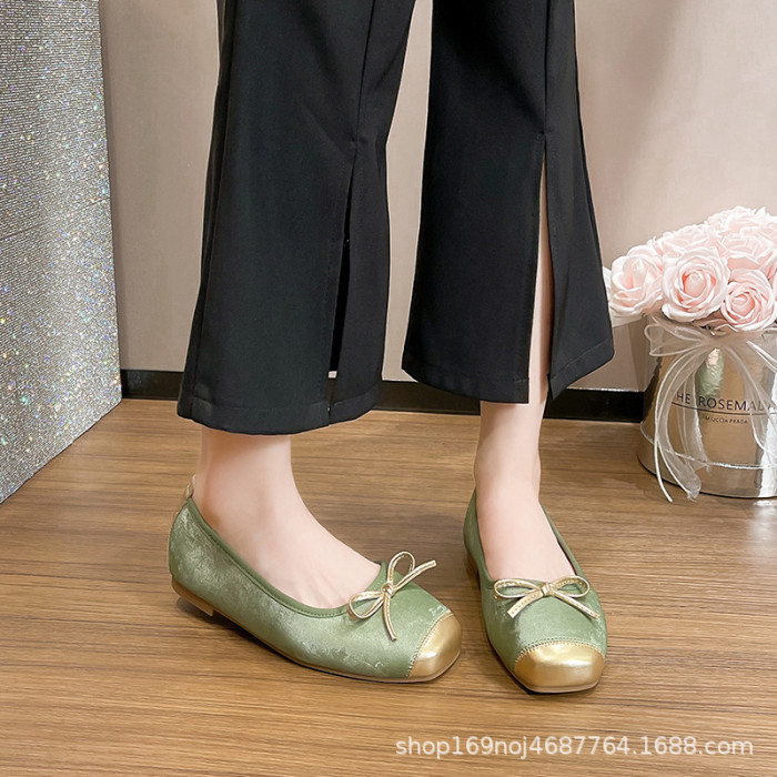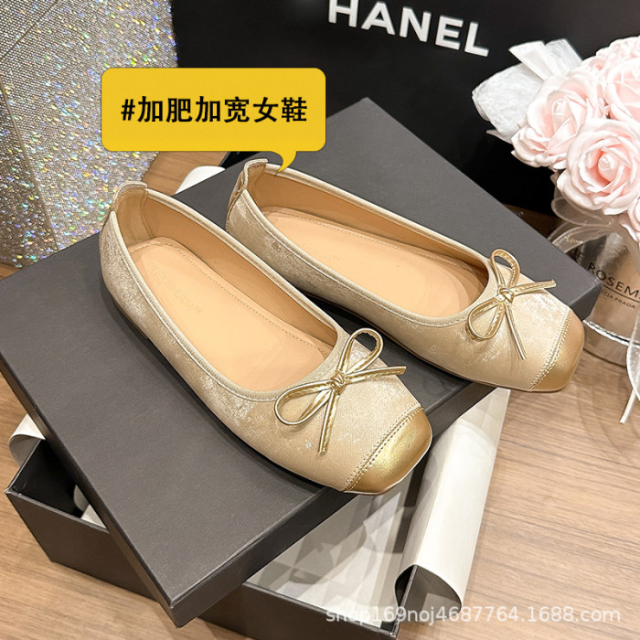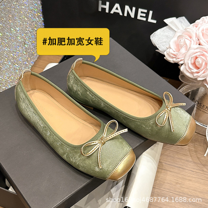 217-3加寬加肥大碼女鞋新中式拼色軟底一腳蹬平底芭蕾瑪麗珍單鞋