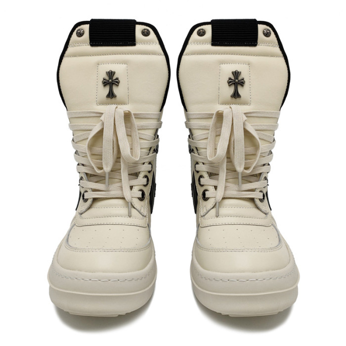 25r春秋潮男鞋圓頭高幫鞋黑白大倒三角白十字架厚底系帶歐美系帶0