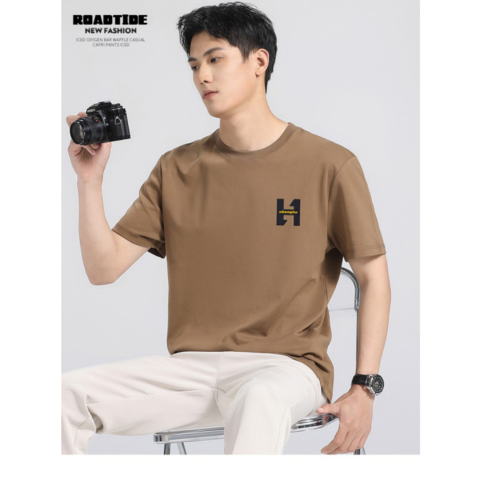 ROADTIDESTARS液氨絲光棉短袖男t恤夏季涼感冰絲寬松潮牌印花上衣