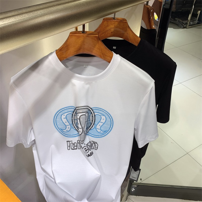 25新款高品質輕奢歐貨圓領短袖男T恤英文設計感時尚簡約修身短袖