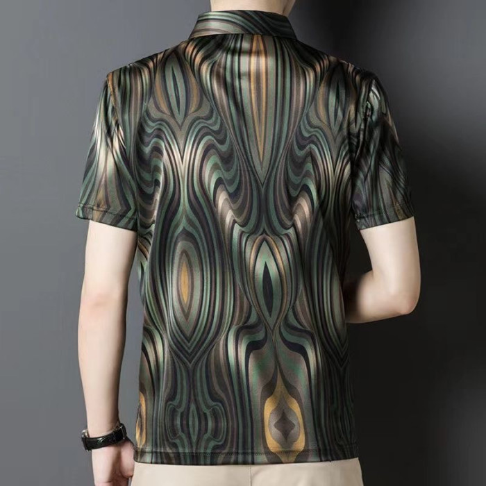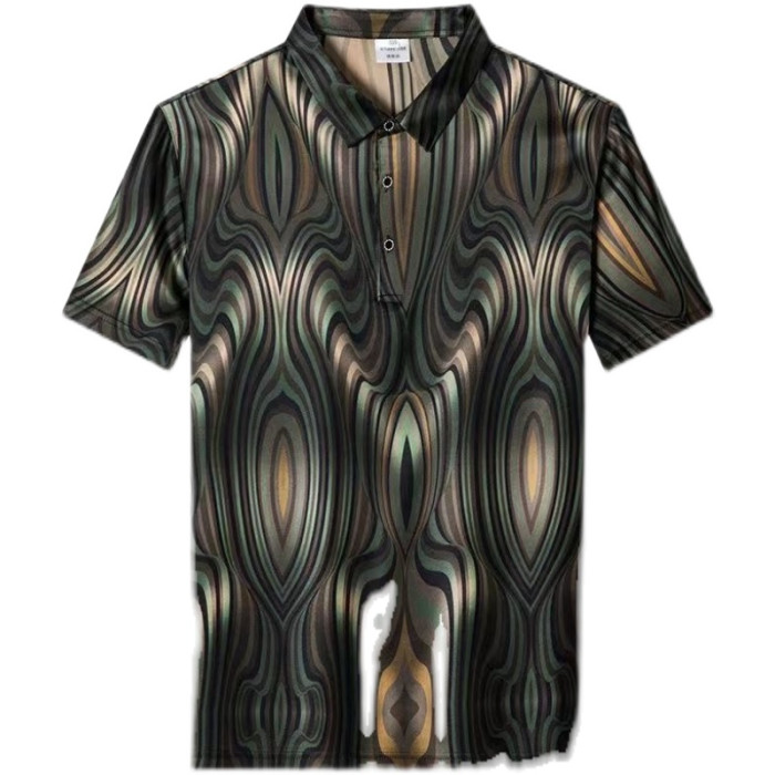 潮牌高檔短袖翻領polo衫男士修身條紋撞色歐貨男裝新款冰絲男t恤