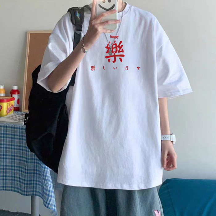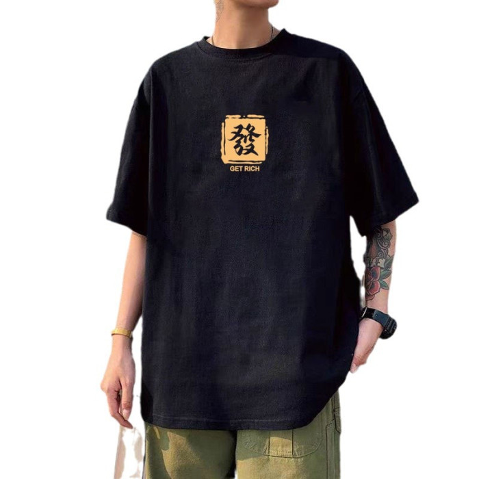 純棉短袖t恤重磅男T恤港風潮牌大碼寬松圓領體恤印花打底衫