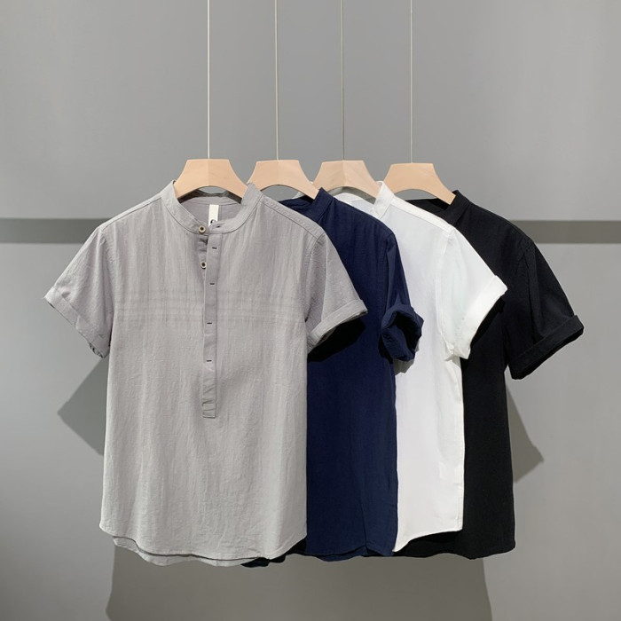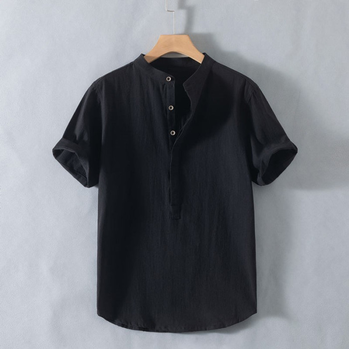 夏季亨利衫男t恤重磅美式半袖開領K短袖硬漢上衣男裝打底衫
