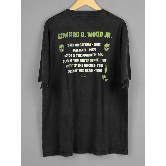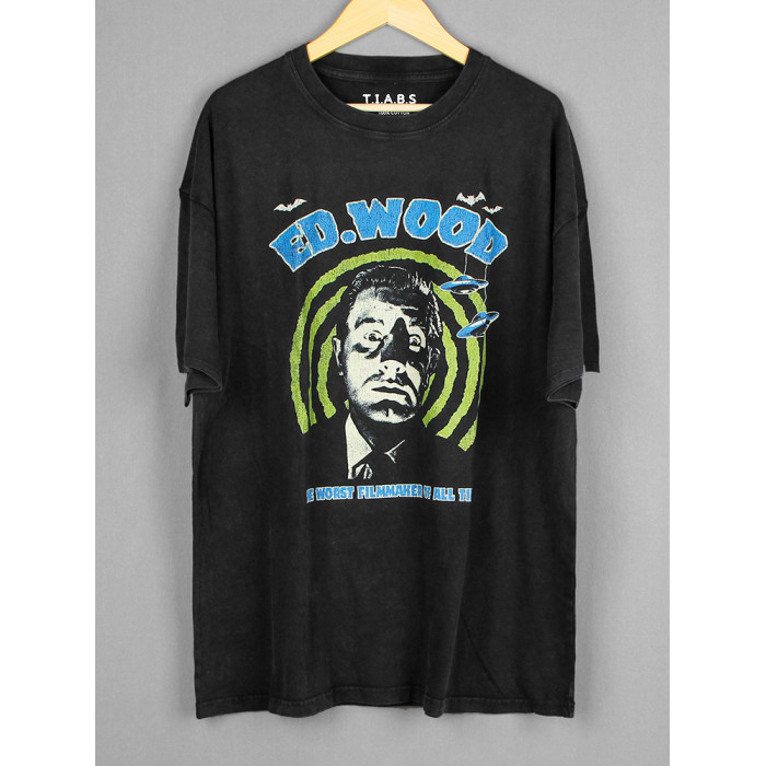 ED WOOD艾德伍德Cult電影導演短袖純棉水洗復古重磅圓領落肩男T恤