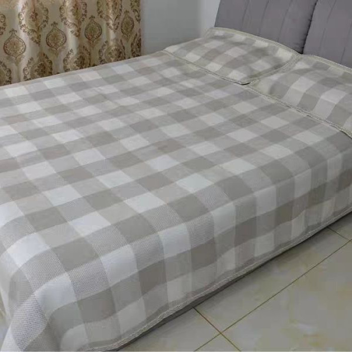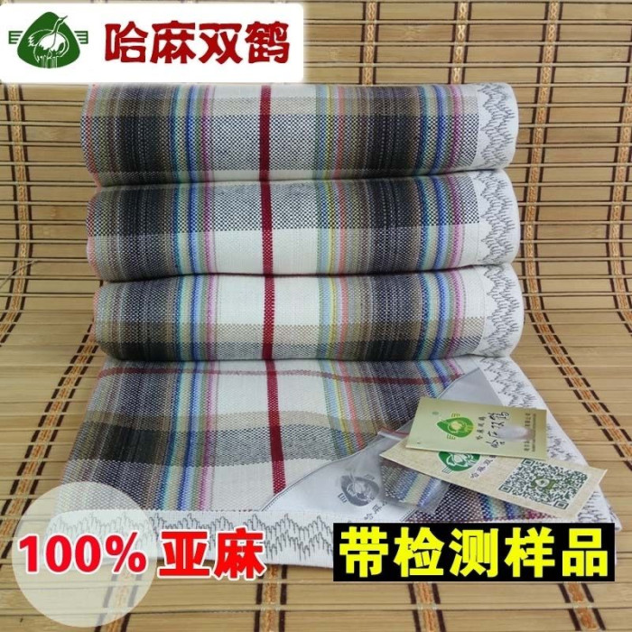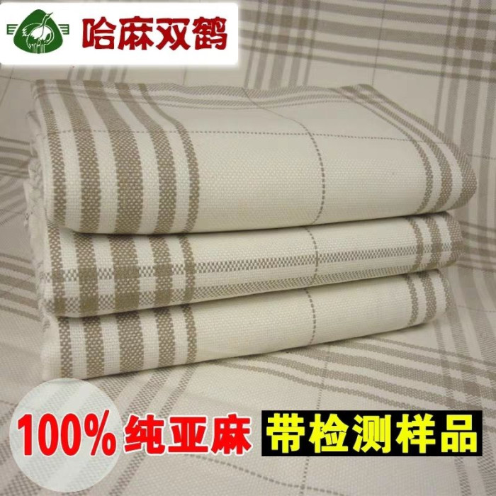 哈麻雙鶴36高支純亞麻涼蓆原色老款花色方格加厚加大