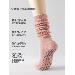 "GBAF"長筒堆堆瑜珈襪子健身普拉提純色小腿襪防滑運動純棉長襪女