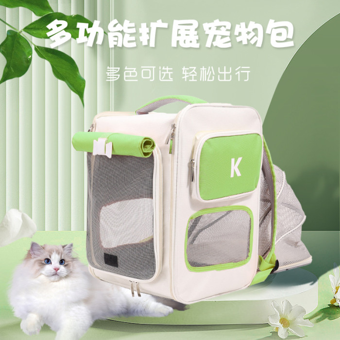 貓包寵物包撞色貓咪狗狗出行可攜式雙肩包擴展戶外透氣貓咪後背包