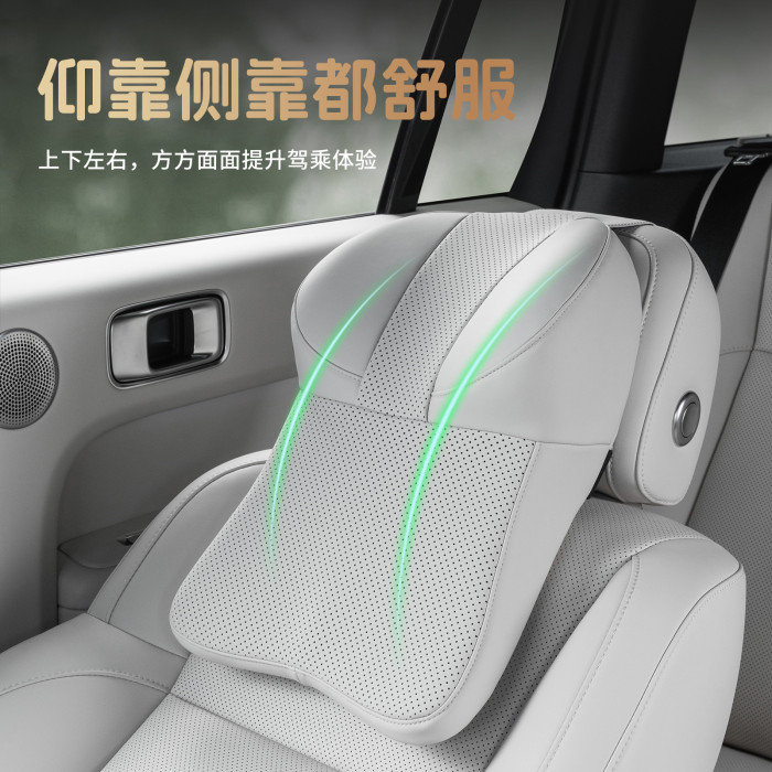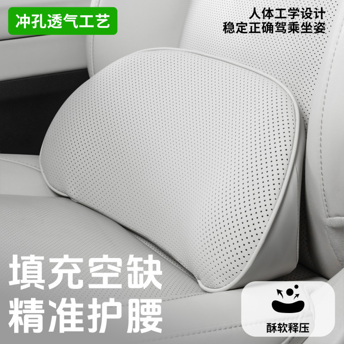 汽車頭枕沖孔透氣吸溼高級感PU皮護頸枕記憶棉車用座椅護腰靠墊枕