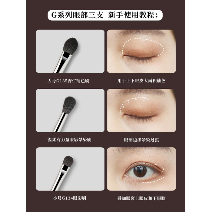 琴製化妝刷G系列三支眼影刷套裝暈染鋪色刷上色細節刷動物毛套刷