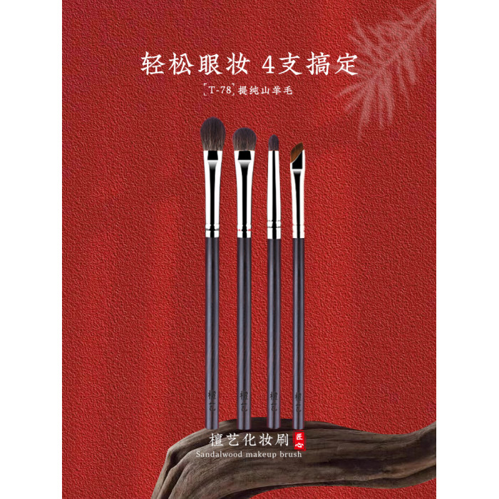檀藝T78山羊毛眼影刷套裝4支眼部鋪色刷暈染刷眼頭提亮細節刷子