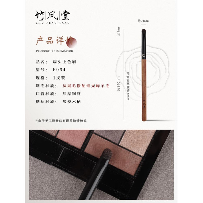 竹鳳堂化妝刷硃雀F964扁頭上色刷細節鋪色刷眼部暈染一支裝動物毛