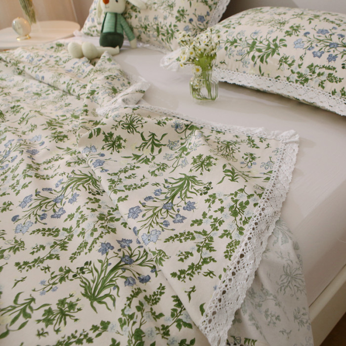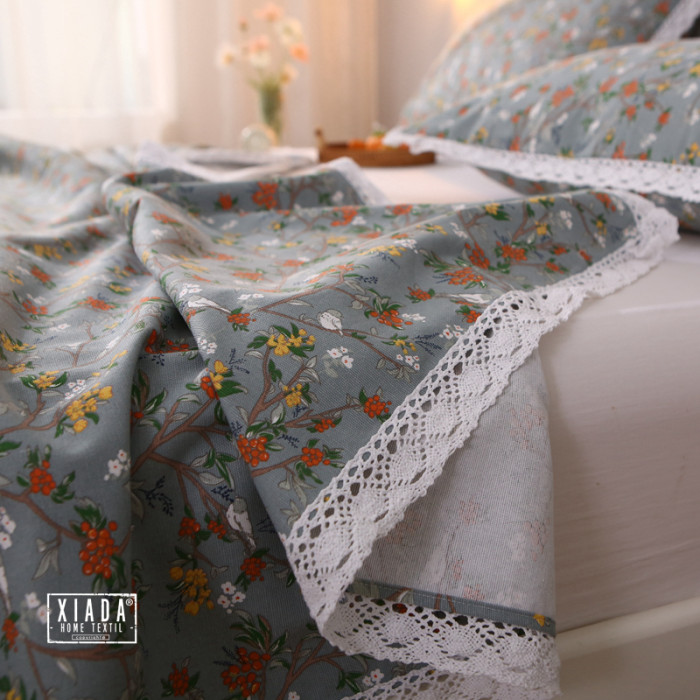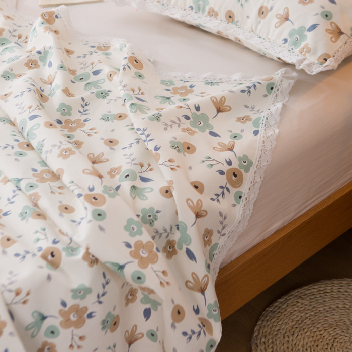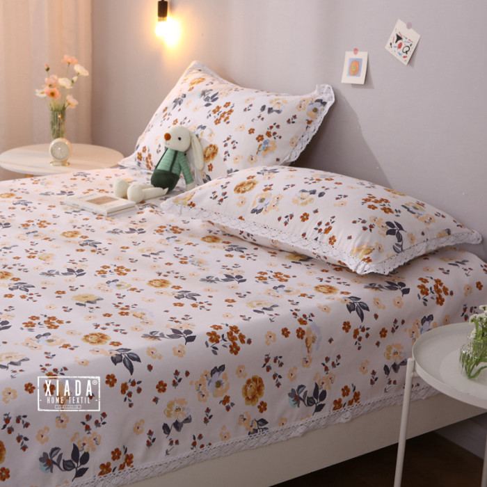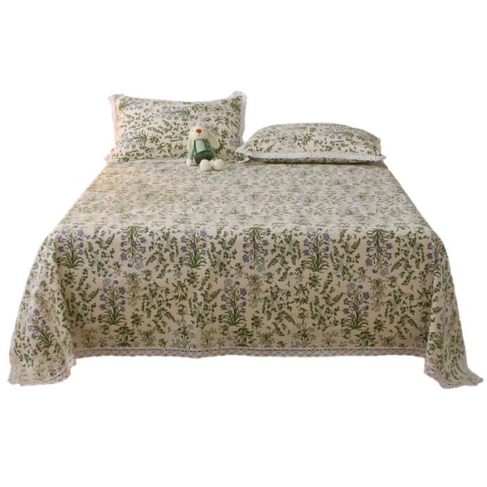 小碎花 花邊床單枕套三件套純棉加厚粗棉布雙人帆布被單田園少女