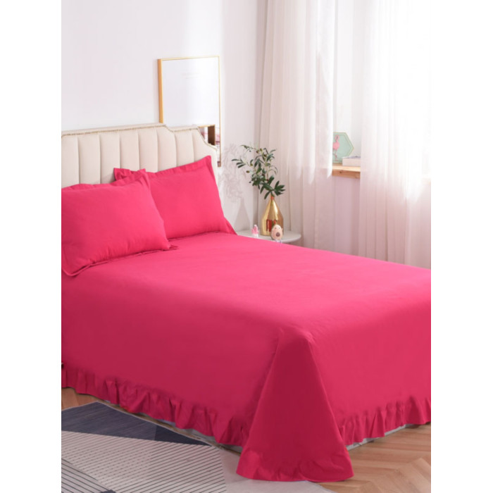 婚慶荷葉邊床單單件純色枕套舒適柔軟公主床上三件套親膚聚酯纖維